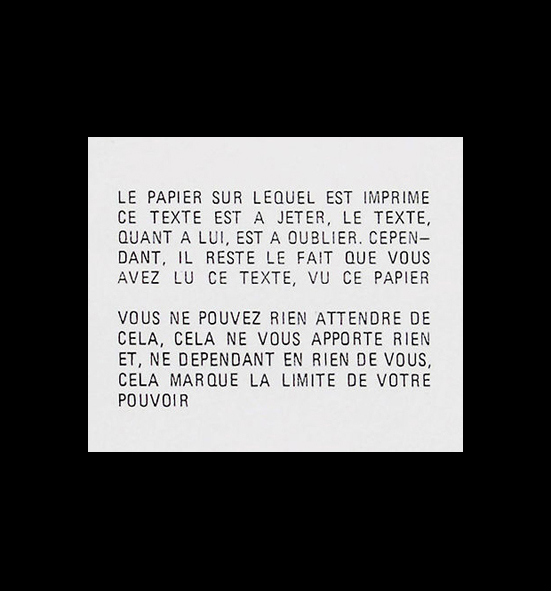 André Cadere Par Pierre-Yves Freund, mardi 26 août 2025. Lien permanent Mots d'autrui André Cadere Le papier sur lequel est imprimé ce texte est à jeter, 1972. Galerie Hervé Bize, Nancy.